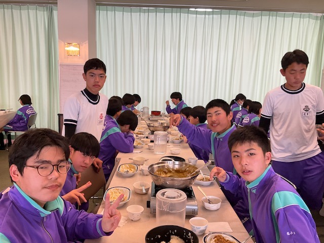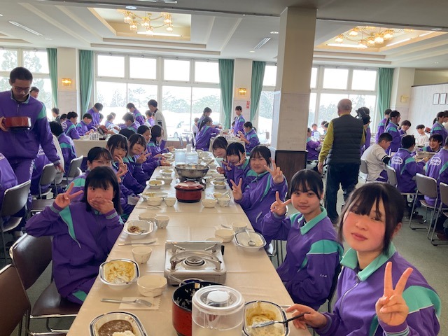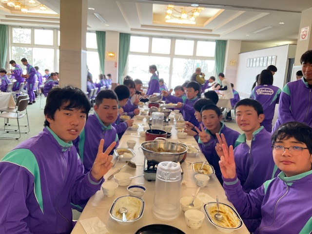 あいにくの雨ですが、怪我等もなくみんな朝食をいただいています。