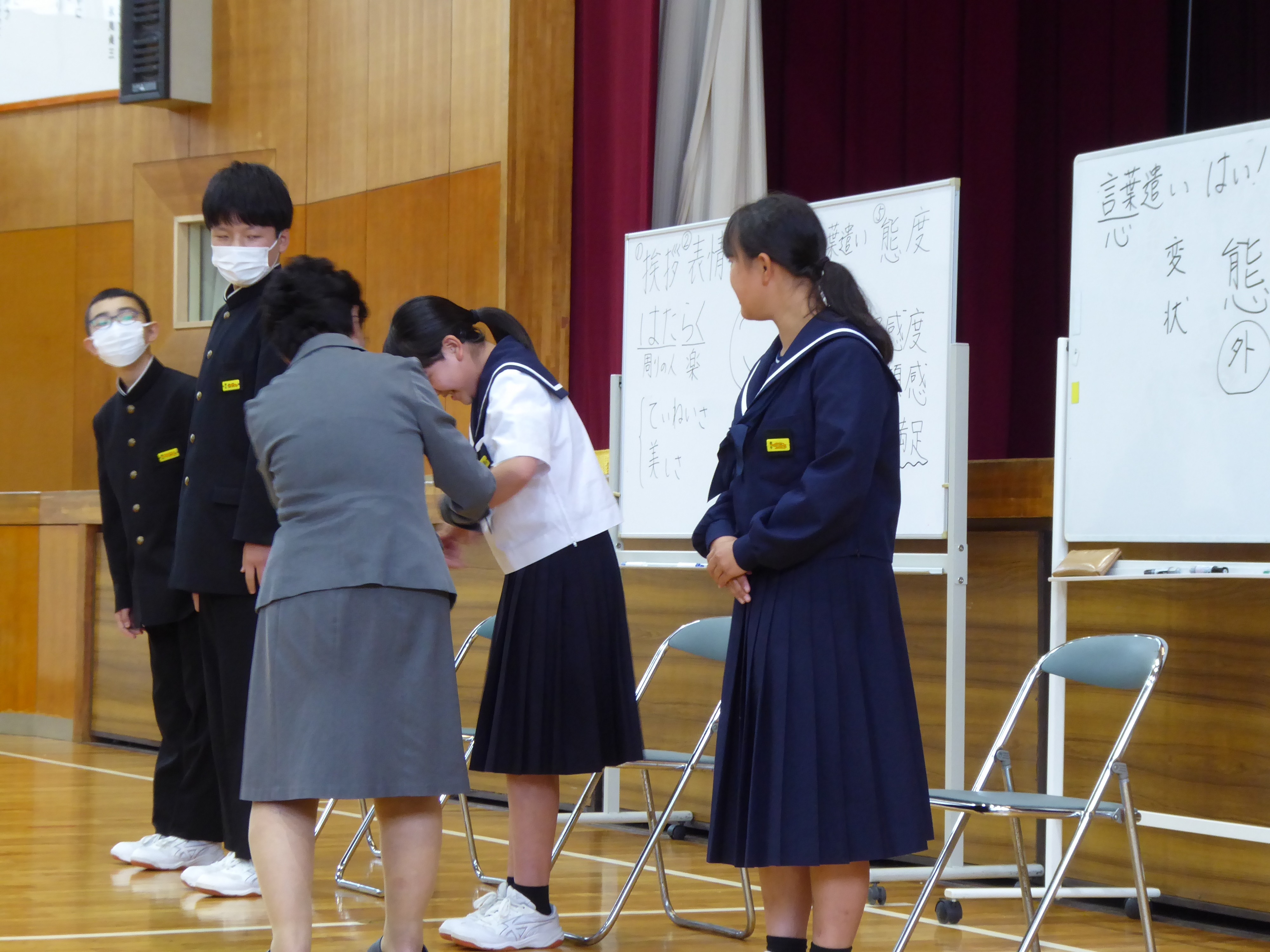 職場体験に向けて、マナー講座が開かれました。